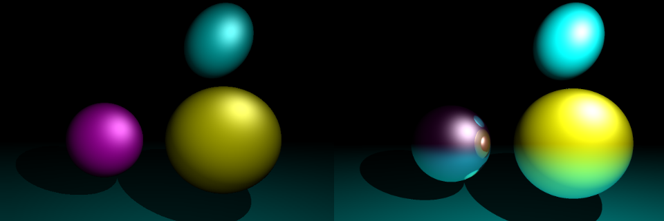 The program supported basic geometries, such as spheres and planes, as well as a simple reflection model, allowing glossy effects and reflections.
